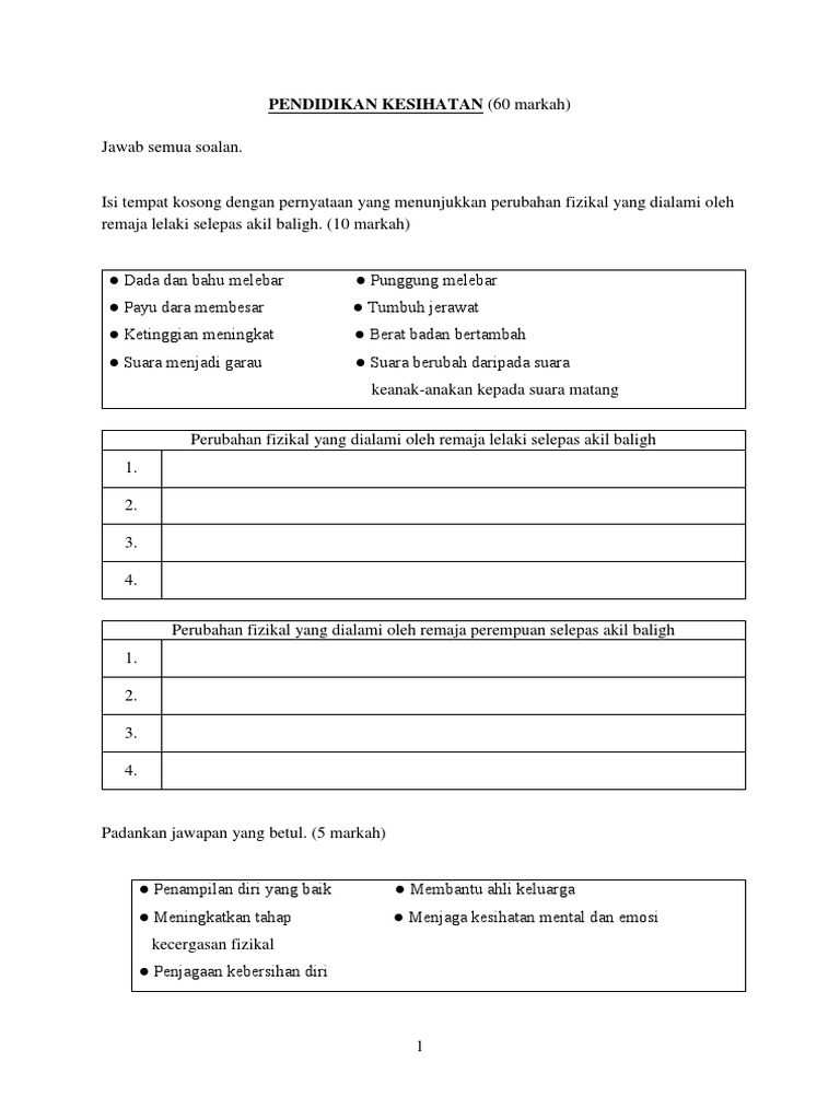Kesihatan diri dan reproduktif exercise. Panduan pengajaran pendidikan kesihatan tahun 3 (2) via www.slideshare.net. Berikut dikongsikan contoh set soalan peperiksaan akhir tahun bagi mata pelajaran tahun 6. Pendidikan jasmani dan pendidikan kesihatan). Makakan seimbang dapat menjamin kesihatan yang _.
